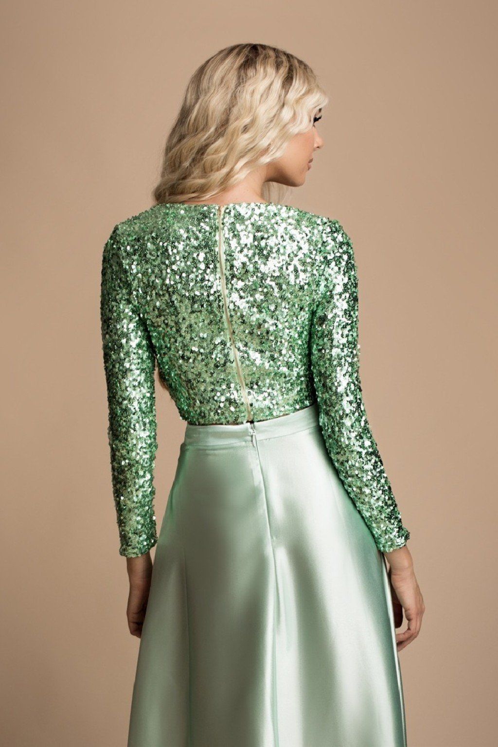 Ez a flitteres felső magával ragadja! Csak válassza ki a megfelelő szoknyát vagy nadrágot és biztosan ragyogni fog benne egy társasági eseményen. Anyaga elasztikus, hátul cipzárral záródik.