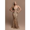 A feltűnő darabok szerelmeseinek ez a ruha tökéletes választás. A ruhát díszítő flitterek szemet gyönyörködtetőek és a feszes szabás pedig kiemeli a nőies íveket. A ruha mellrészén megerősített, hátul cipzárral záródik, hátoldala fűzővel díszített. A vállpántok szükség szerint eltávolíthatóak. A csillám nincs az anyagba varrva, tehát hullik a ruháról.