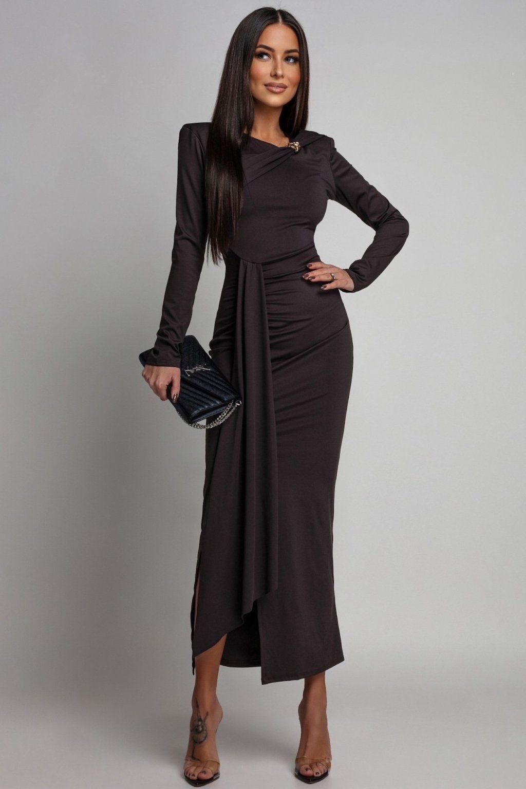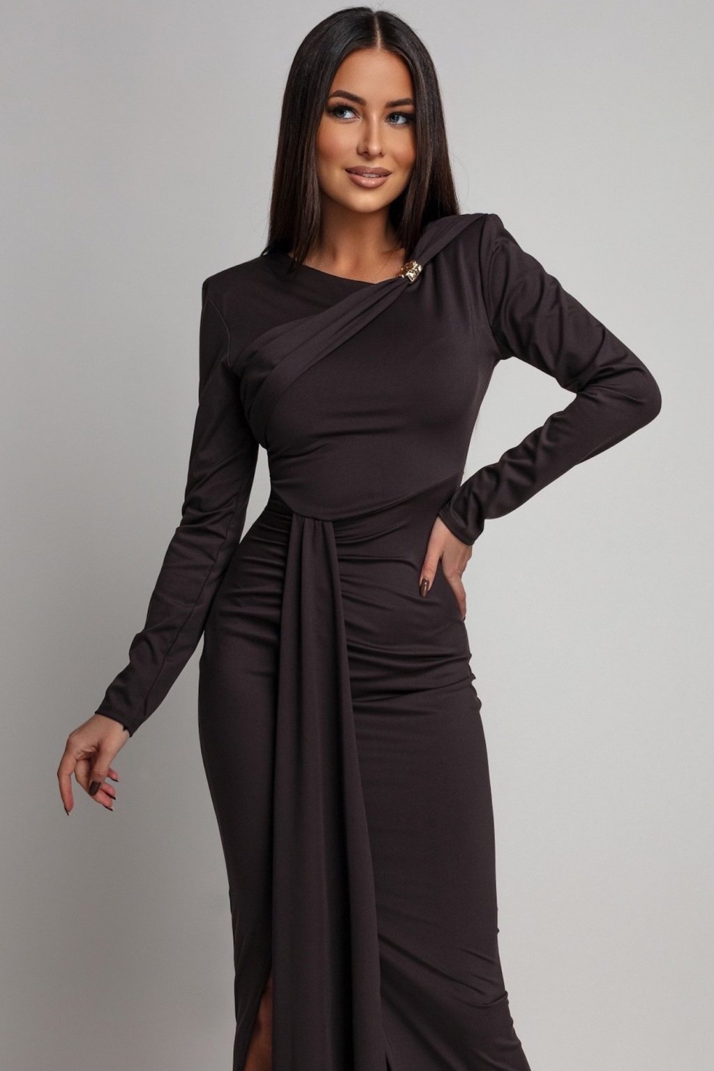 Ez a ruha tökéletesen kiemeli az alakot, miközben finom eleganciával és luxusérzettel hangsúlyozza a nőiességet. Ravasz stílusának köszönhetően tökéletes választás akár egy elegáns estélyre, akár egy stílusos városi kiruccanásra. A ruha anyaga rugalmas.