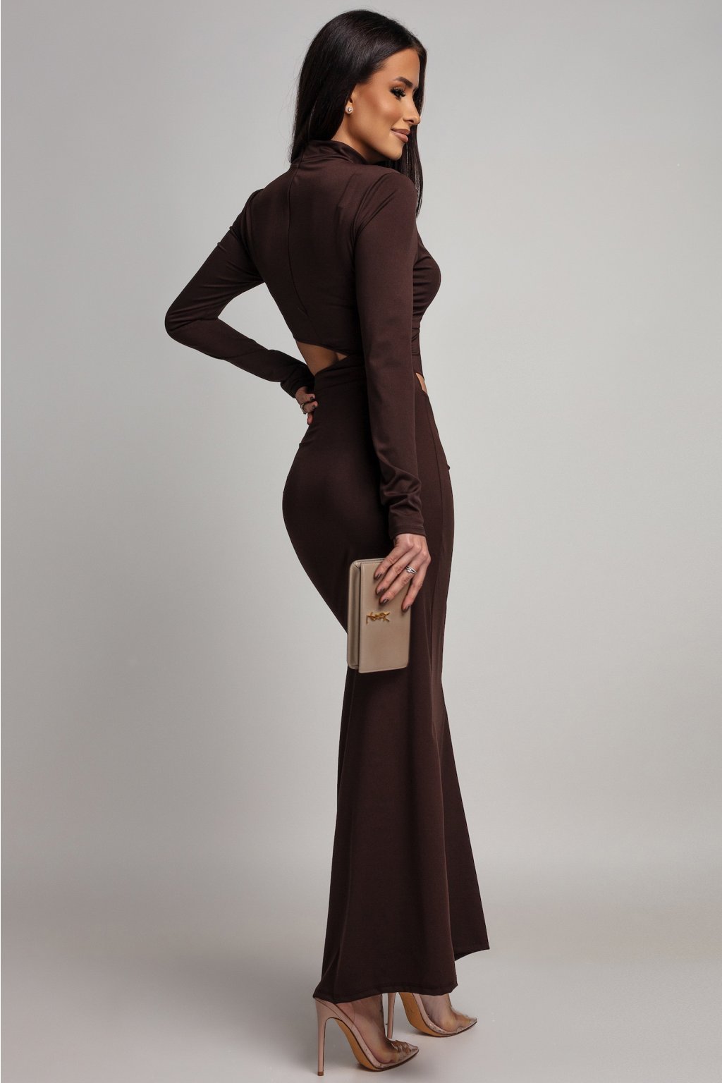 Barna testhezálló ruha kivágásokkal