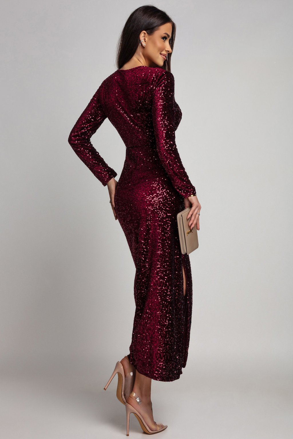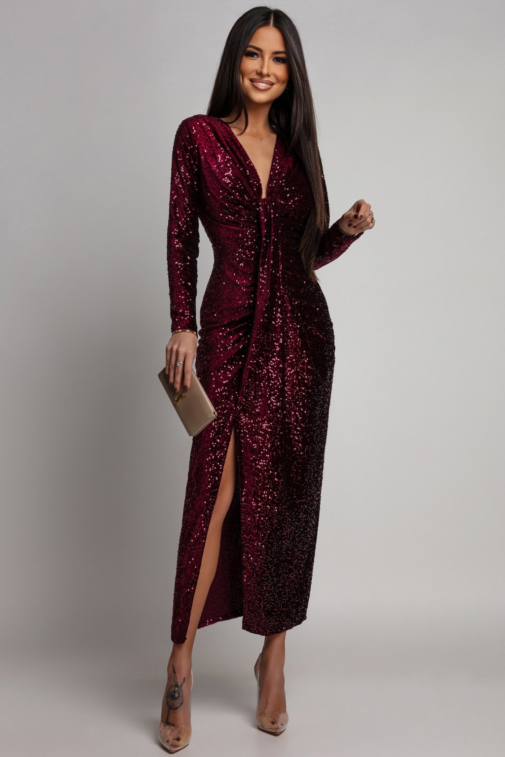 Bordó flitteres ruha hasítékkal