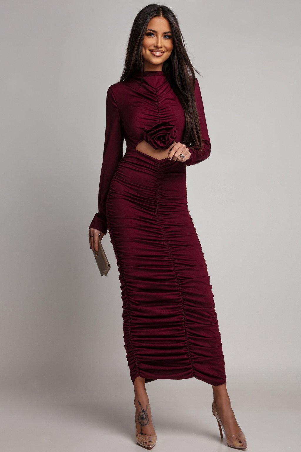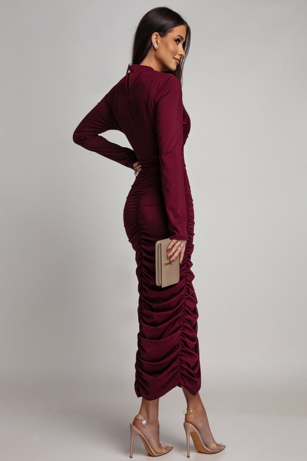 Bordó testhezálló ruha redőzéssel