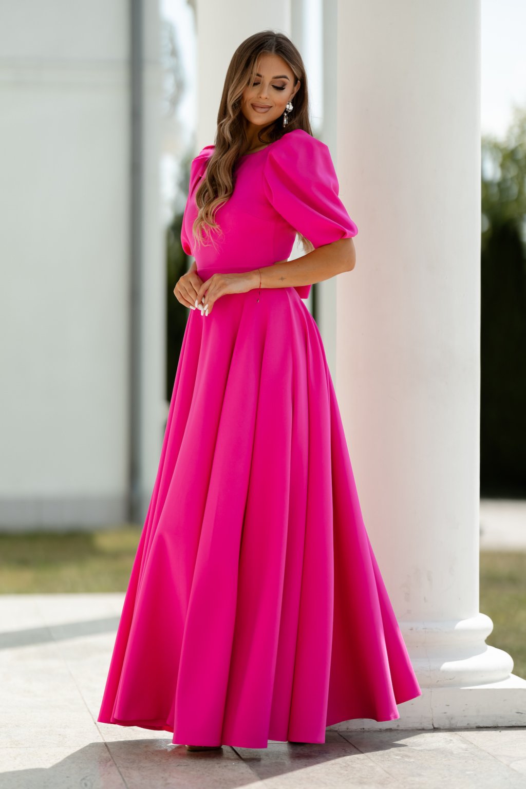 Induljon el ebben az elbűvölő ruhában bármilyen társasági eseményre, mint egy nagy adag eleganciával, bájjal és nemességgel rendelkező hölgy. A laza ujjak és a hátkivágás romantikus hatást kölcsönöz a ruhának. A szoknya hátul cipzárral záródik.