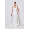 Gyönyörű alkalmi ruha, amely pompát és eleganciát sugároz magából. Az ezüst díszítés biztosítja a bájos megjelenést, és garantáltan királynő lesz az oltár előtt. A ruha mellrészén megerősített, hátul cipzárral záródik.