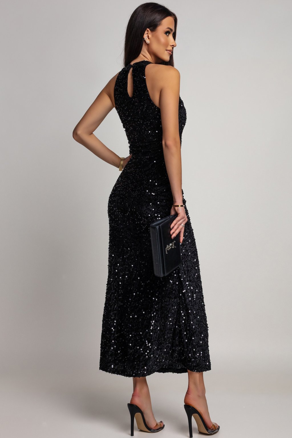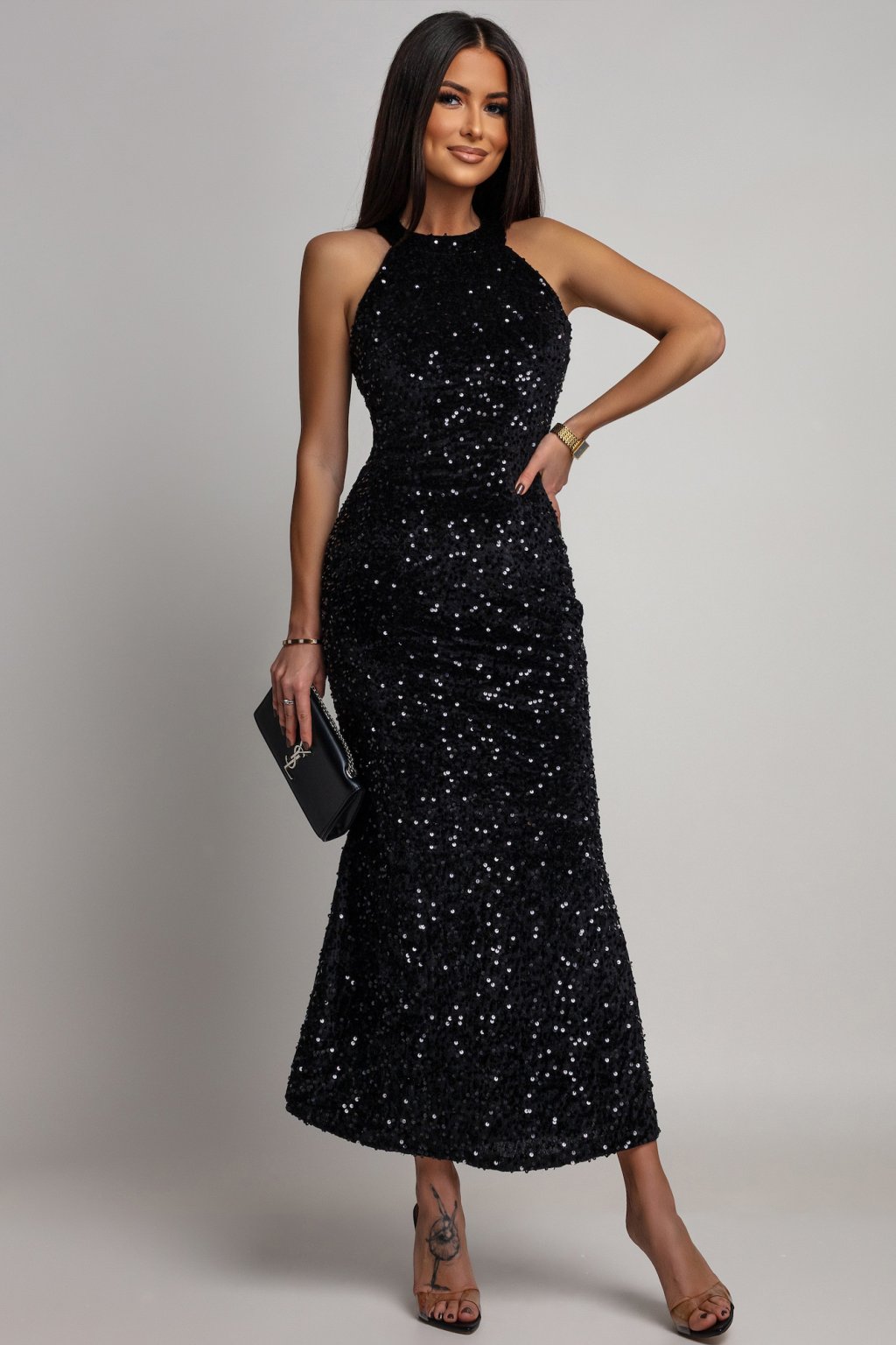 Egy ruha, amely Ön helyett beszél. Az anyag csillogó felülete és a szűk szabás kombinációja merész, mégis elegáns megjelenést biztosít. Tökéletes választás bálokra, gálaestekre vagy társasági eseményekre. A ruha anyaga rugalmas.
