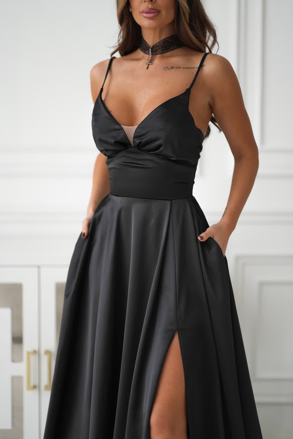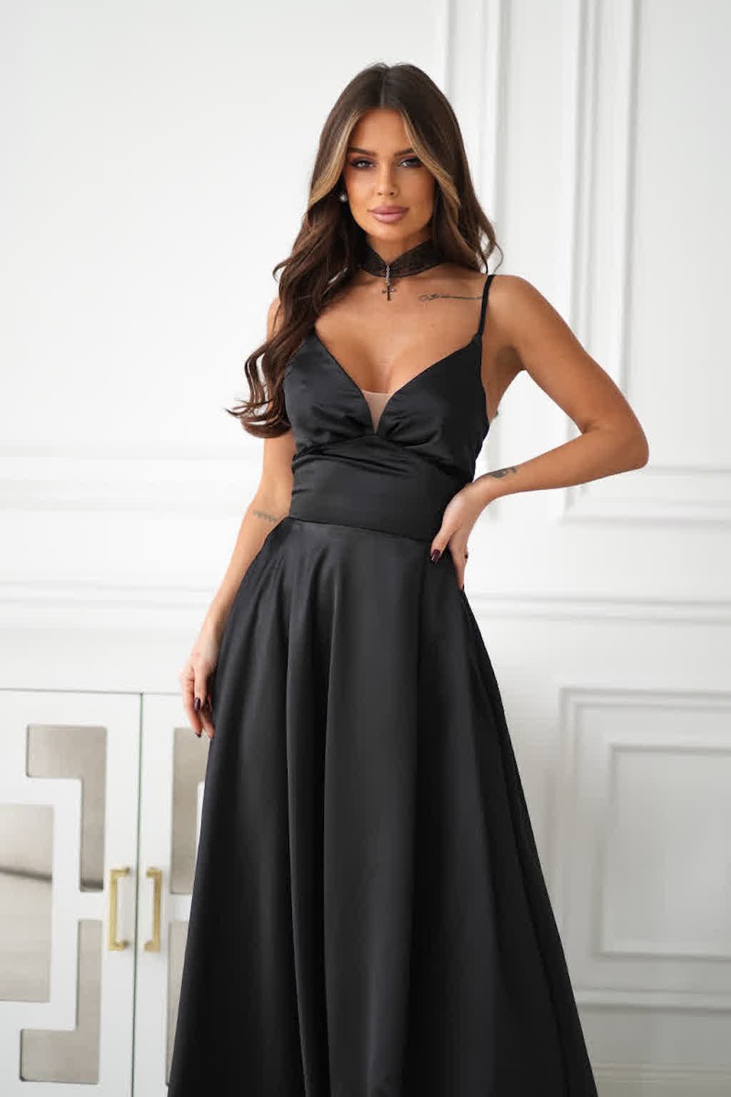 Ez az estélyi ruha a kifinomultság és az érzéki vonzerő tökéletes összhangja. A ruha minden részletét úgy tervezték, hogy viselőjének igazán kivételes megjelenést biztosítson– legyen szó akár társasági eseményről, gálaestről, vagy olyan pillanatokról, amikor igazán exkluzív stílusban szeretne ragyogni. A ruha a szoknyán cipzárral záródik, a hátoldalán pedig fűzős, melynek köszönhetően a vállpántok hosszát kényelmesen lehet állítani.