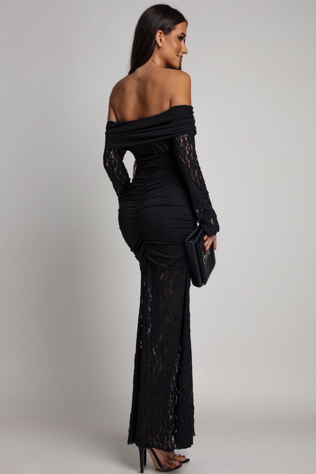 Ez a ruha a pompa és az esti elegancia szinonimája. A szűk szabás tökéletesen követi a sziluettet, a romantikus csipke pedig csábító és kifinomult hatást kölcsönöz a megjelenésnek. Ideális választás különleges estékre, ahol ragyogni szeretnél. A ruha anyaga rugalmas.