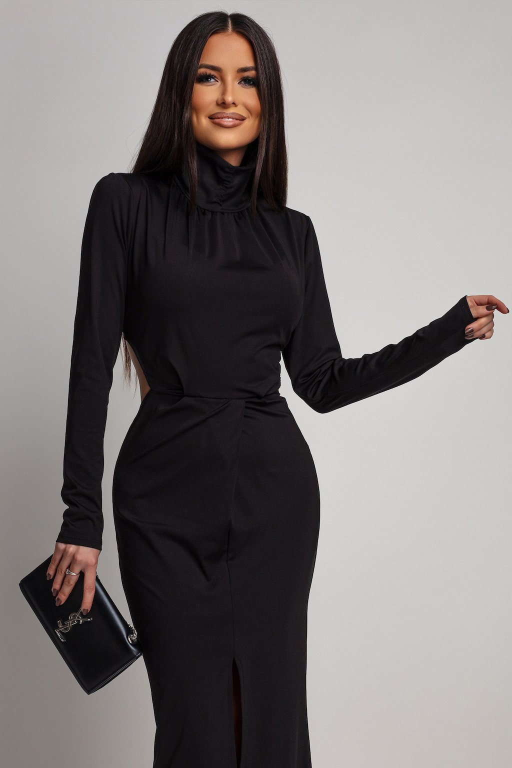 Egy szűk, szexi ruha nyitott háttal, azoknak a hölgyeknek, akik nem félnek feltűnést kelteni a tömegben. Látványos, mégis elegáns darab, amely minden lépésnél elbűvöli a környezetét. A ruha anyaga rugalmas.