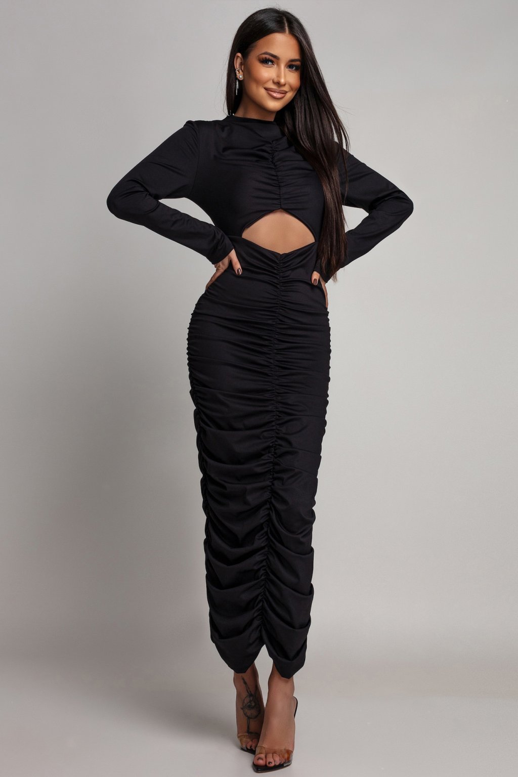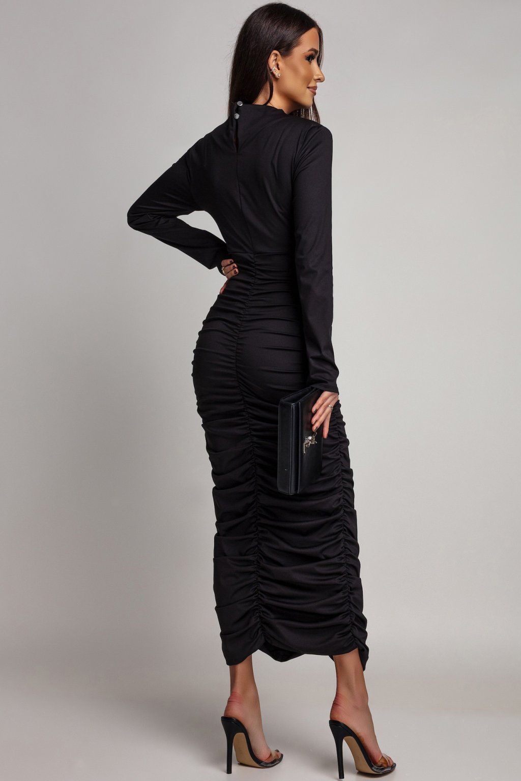 Fekete testhezálló ruha redőzéssel