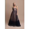 A gyönyörű, alján redőzéssel díszített tüllszoknya nagy eleganciát áraszt. Kétségtelenül előkelő hölgy lesz benne egy társasági eseményen. A hátrészen megkötős, a mellrész megerősített, pántjai állíthatóak.