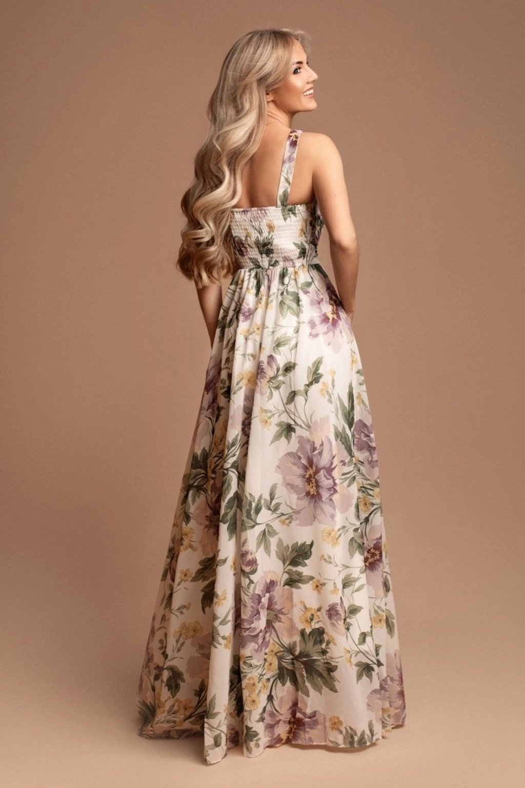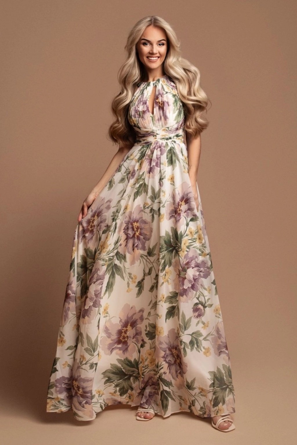 Smotanové spoločenské šaty s kvetinami (Méret L)