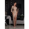 Ruha, amely hatalmas adag eleganciát, kifinomultságot, nemességet áraszt. Flitterek, szexi magas hasíték, nyitott derék - ebben a szépségben biztosan elkápráztatja mindenki tekintetét maga körül. A ruha anyaga elasztikus, oldalán cipzárral záródik.