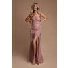 Szokatlan, szemet gyönyörködtető, elegáns és egyben szexi. Egyszerűen ellenállhatatlan. A magas hasíték gondoskodik arról, hogy minden lépése lebilincselő legyen. A csillogó strasszokkal díszített ezüst kötés pedig ragyogóvá varázsolja személyiségét. A ruha anyaga enyhén rugalmas, hátul cipzárral záródik, mellrészén megerősített.