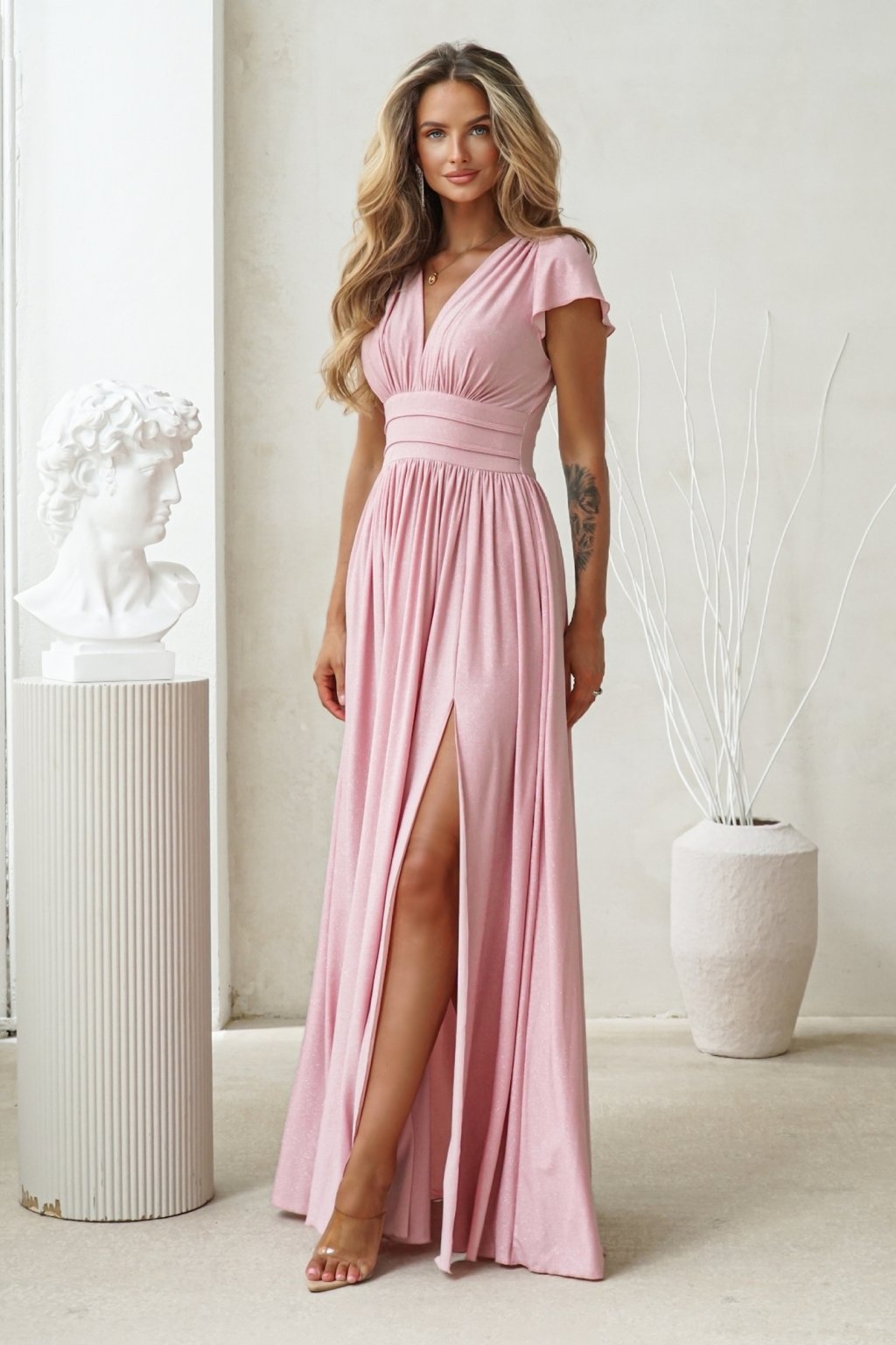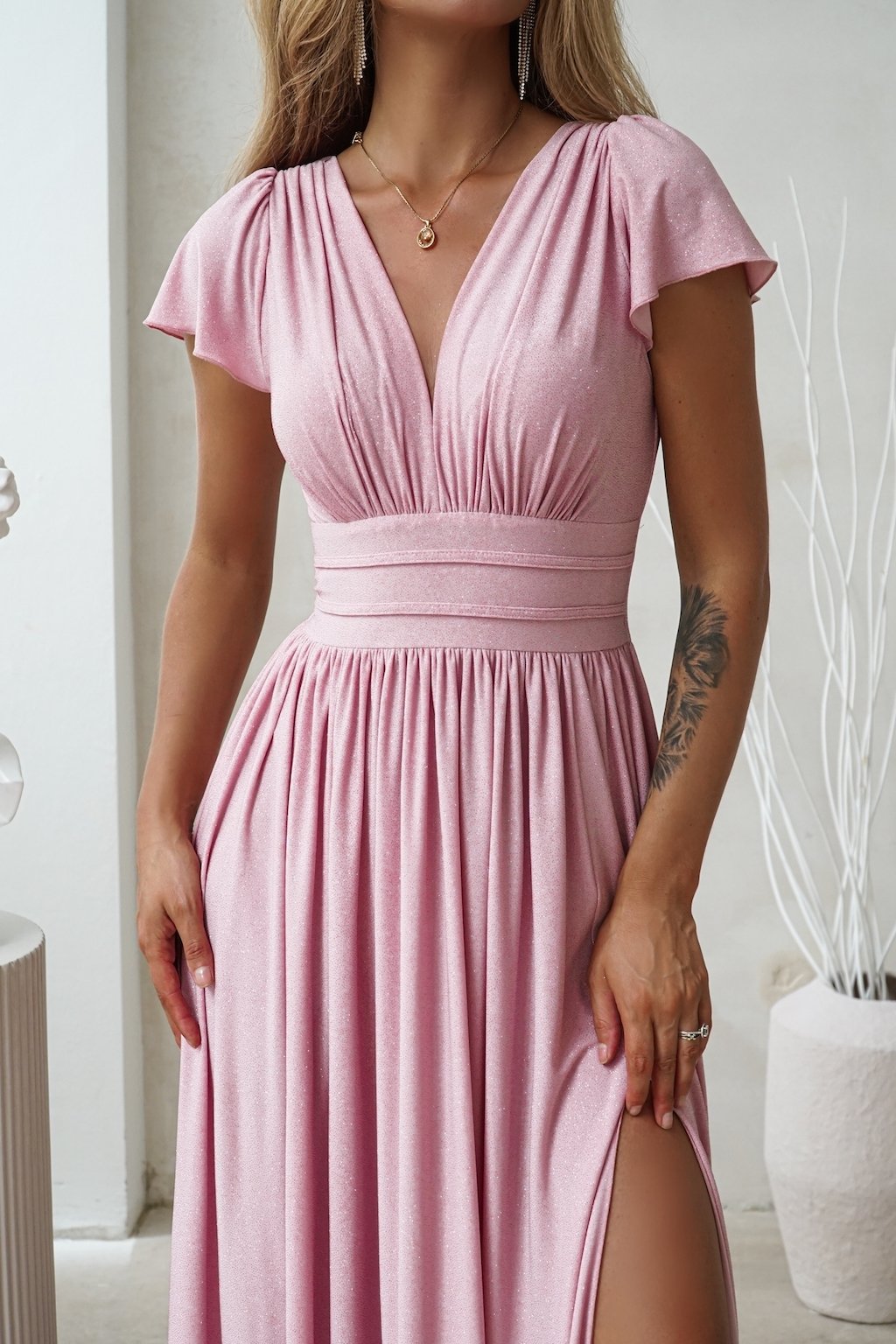 Ha szeret mindent, ami csillog, ez a ruha tökéletes az ön számára. A magas hasítéknak köszönhetően szexi léptekkel lép a terembe és kétségtelenül mindent beragyog majd maga körül. A ruha anyaga enyhén rugalmas. A ruha hátul cipzárral záródik. A csillám nincs az anyagba varrva, tehát hullik a ruháról.