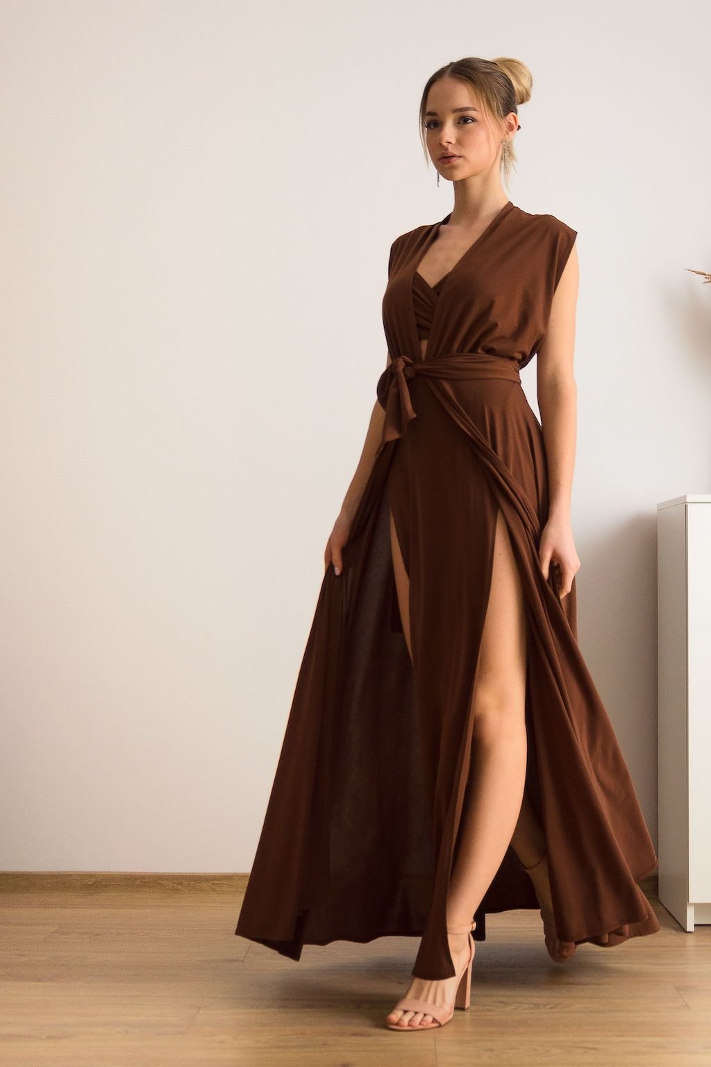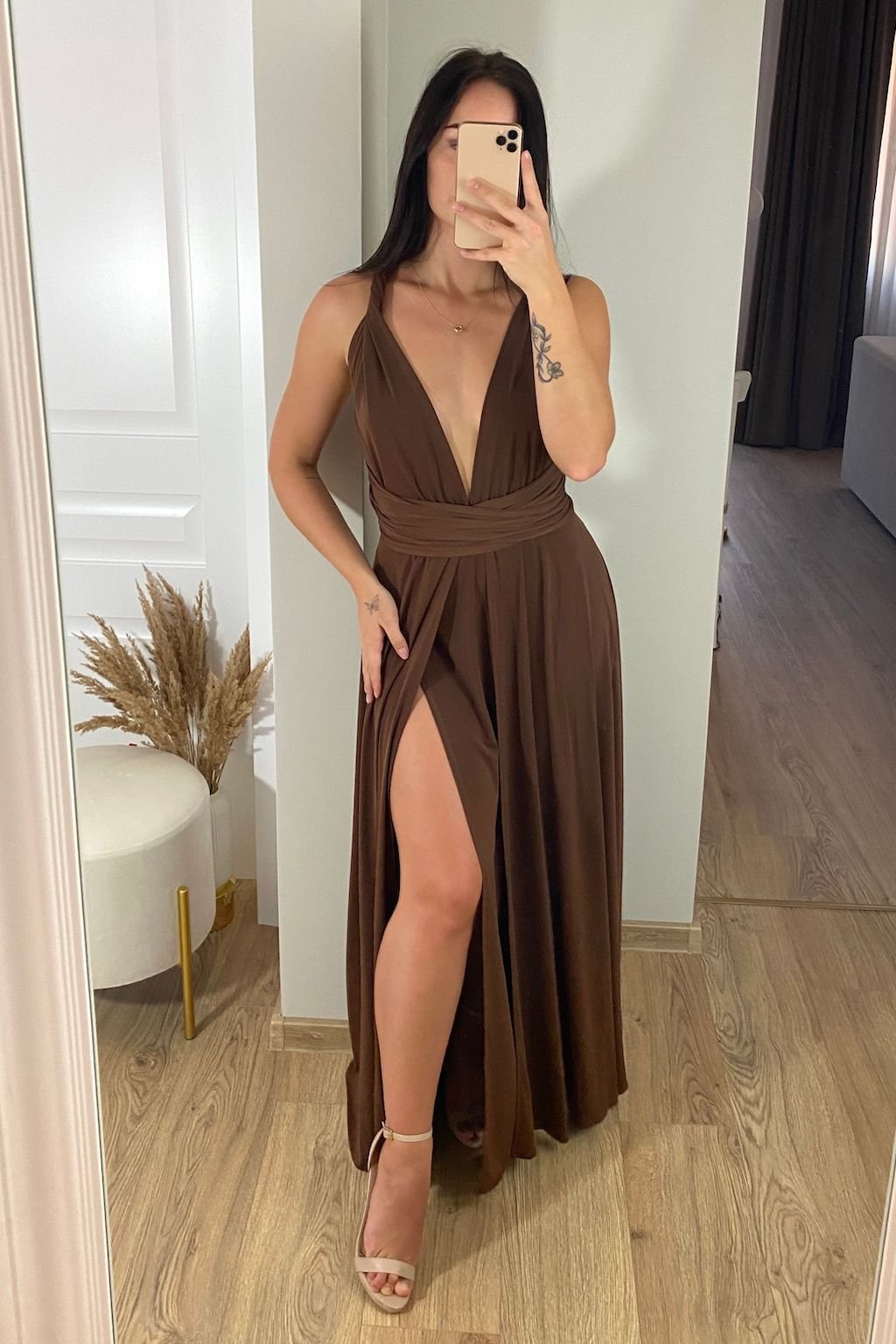 Sötétbarna kötős hosszú ruha
