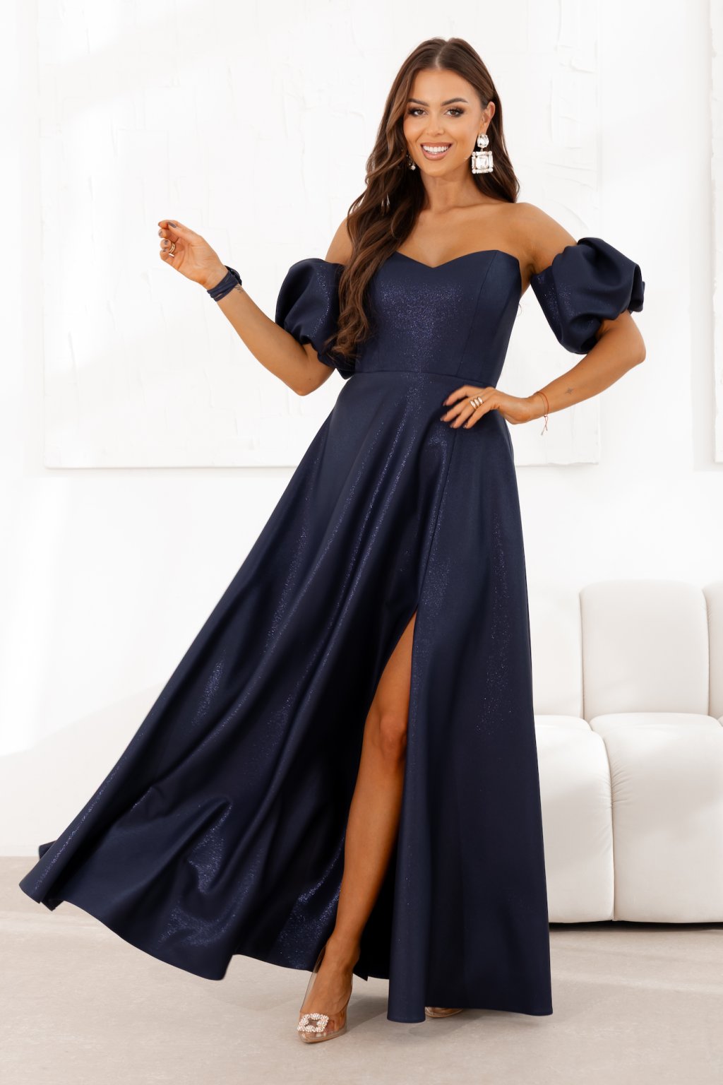 Tmavomodré trblietavé šaty s rozparkom (Méret L)