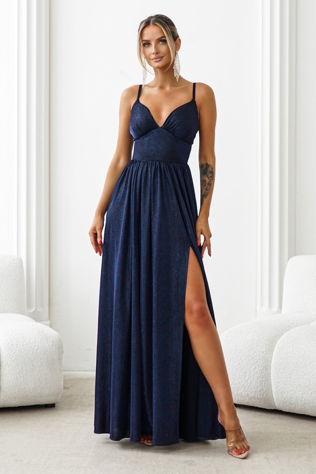 Ebben a ruhában nagy adag eleganciával és bájjal rendelkező érzéki hölgy lép be a terembe. Biztosan nem marad benne észrevétlen. Anyaga enyhén rugalmas, hátul cipzárral záródik, mellrészén megerősített. A csillám nincs az anyagba varrva, tehát hullik a ruháról.