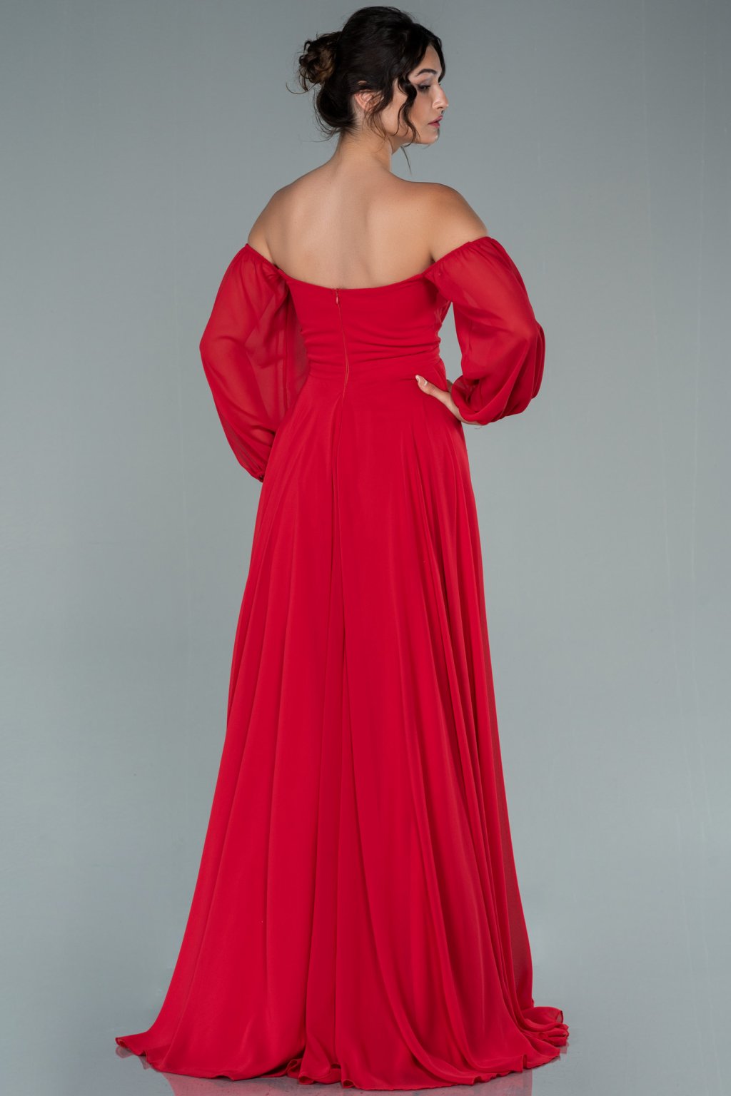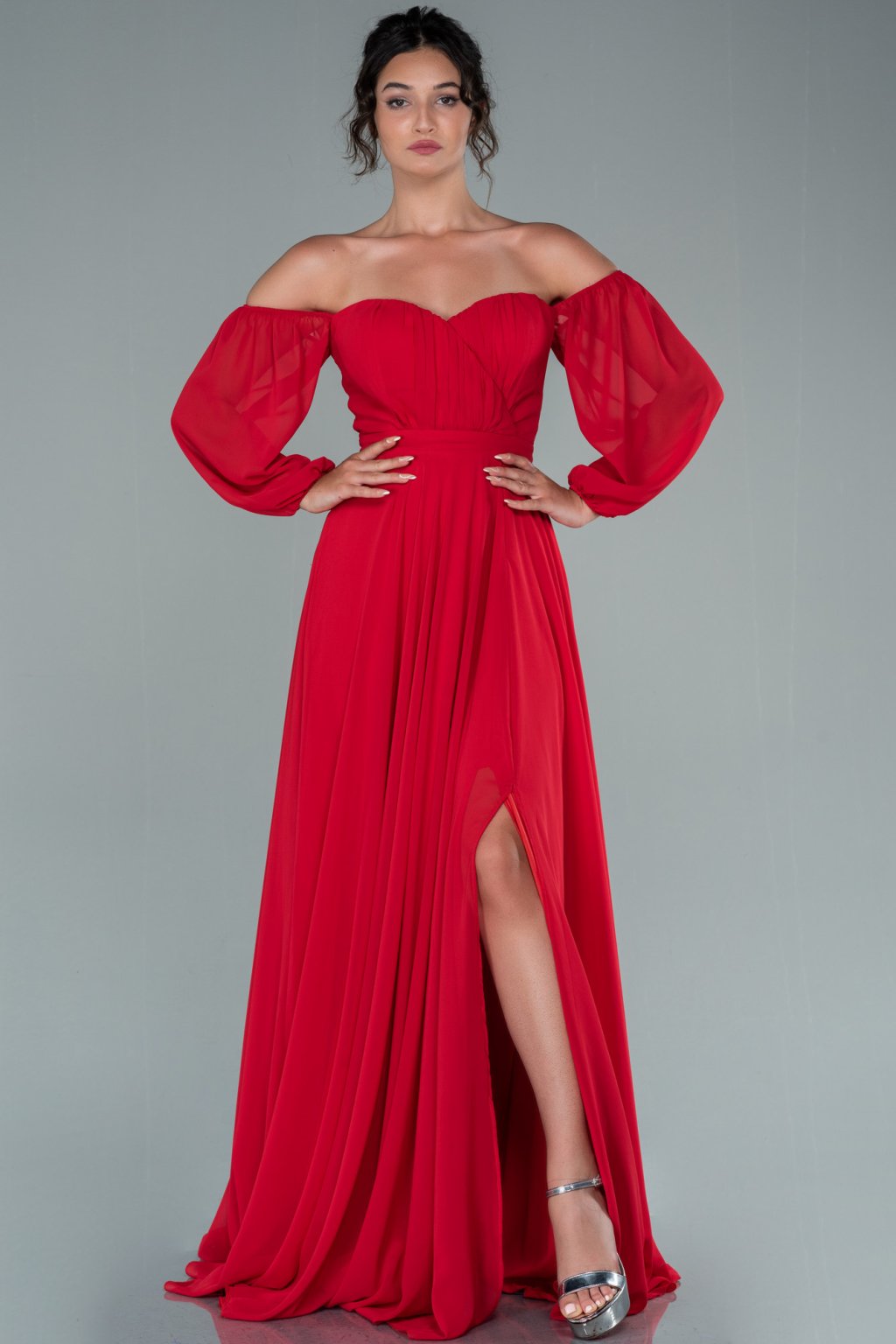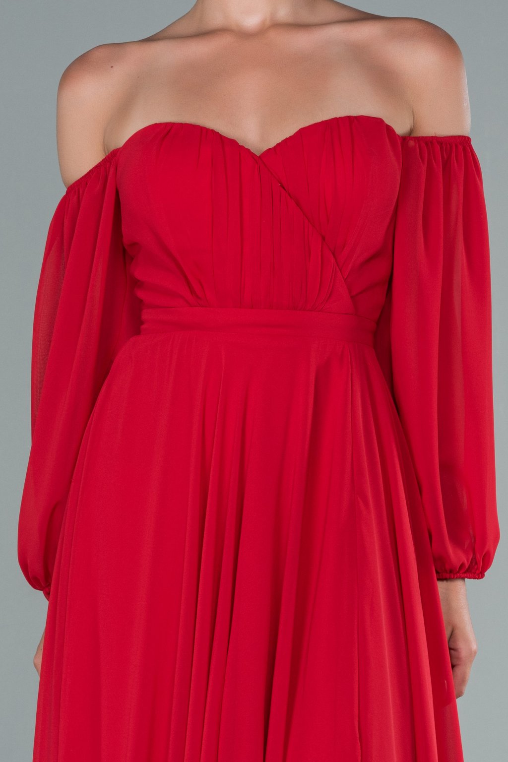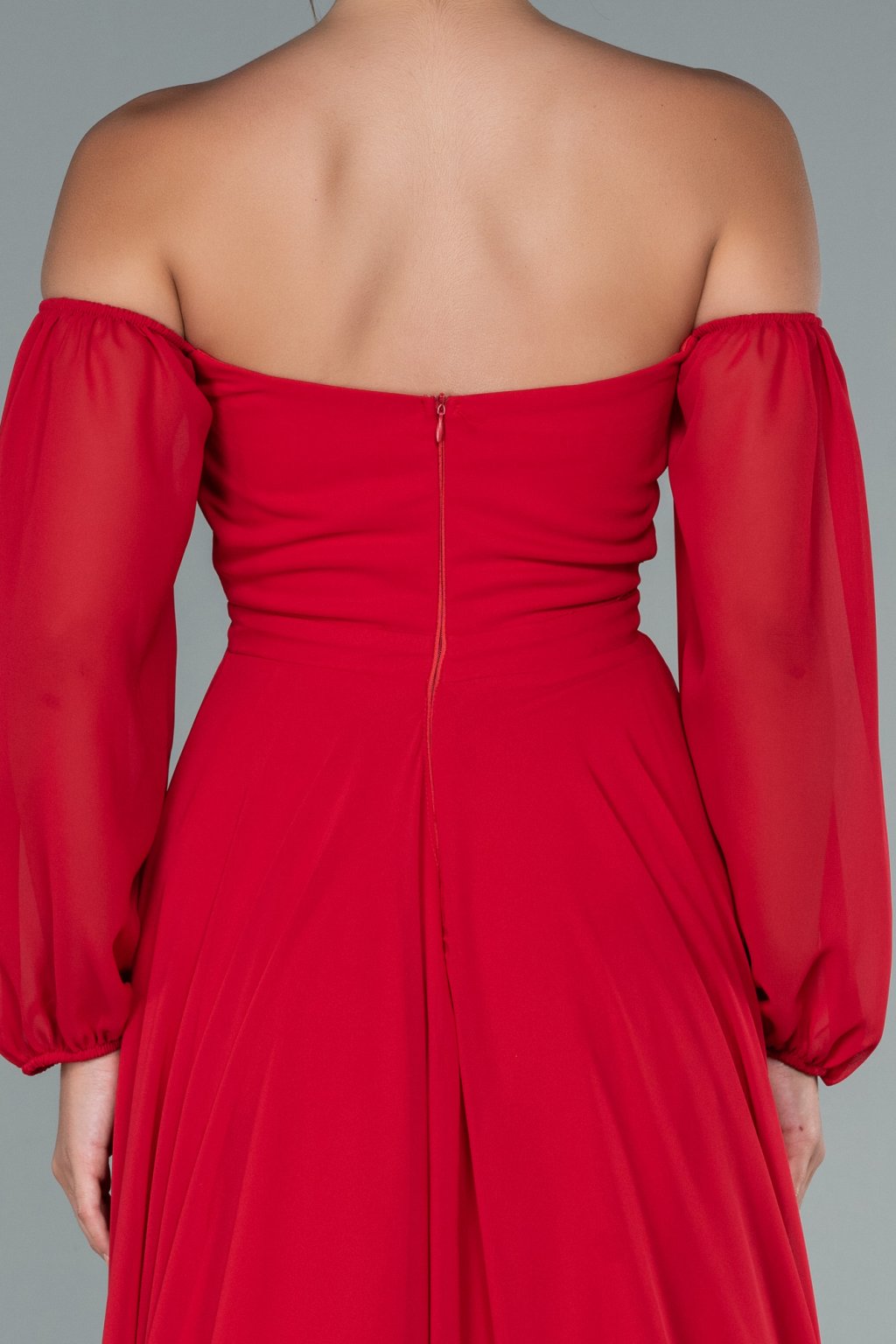 Vállra ereszkedett piros partiruha
