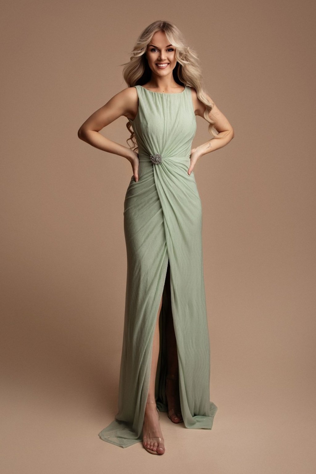 Közeleg a barátnője esküvője, és a terjedelmes tortaszoknya nem az Ön stílusa? Szóval ez a ruha lesz a megfelelő választás. Egyszerű, de ugyanakkor romantikus és szexi. A ruha anyaga elasztikus, mellrészén megerősített, hátul cipzárral záródik. A ruha egy levehető brosst tartalmaz, fényes strasszokkal díszítve.