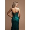 A feltűnő darabok szerelmeseinek ez a ruha tökéletes választás. A ruhát díszítő flitterek szemet gyönyörködtetőek és a feszes szabás pedig kiemeli a nőies íveket. A ruha mellrészén megerősített, hátul cipzárral záródik, hátoldala fűzővel díszített. A vállpántok szükség szerint eltávolíthatóak. A csillám nincs az anyagba varrva, tehát hullik a ruháról.