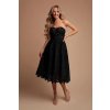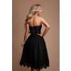Ebben a csipkével díszített ruhában mindenki figyelmét felkelti! Látványos kiegészítője a hátoldali kötés. A ruha a szoknya hátulján cipzárral záródik, a mellrészen megerősített, a vállpántok szükség szerint eltávolíthatóak és állíthatóak.