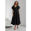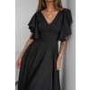 Ebben a ruhában garantáltan mindenki figyelmét felkelti. A gyönyörű A-vonalú szoknya és a romantikus fodros ujjak kombinációja bájos és elegáns megjelenést biztosít. A ruha hátul cipzárral záródik.