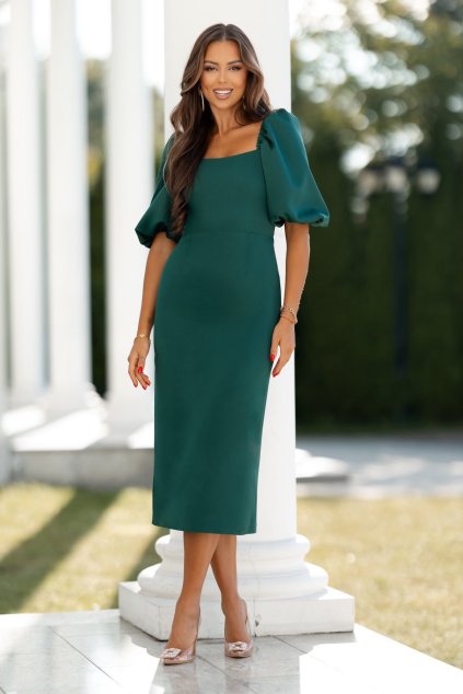 Fekete testhezálló midi ruha ballon ujjakkal