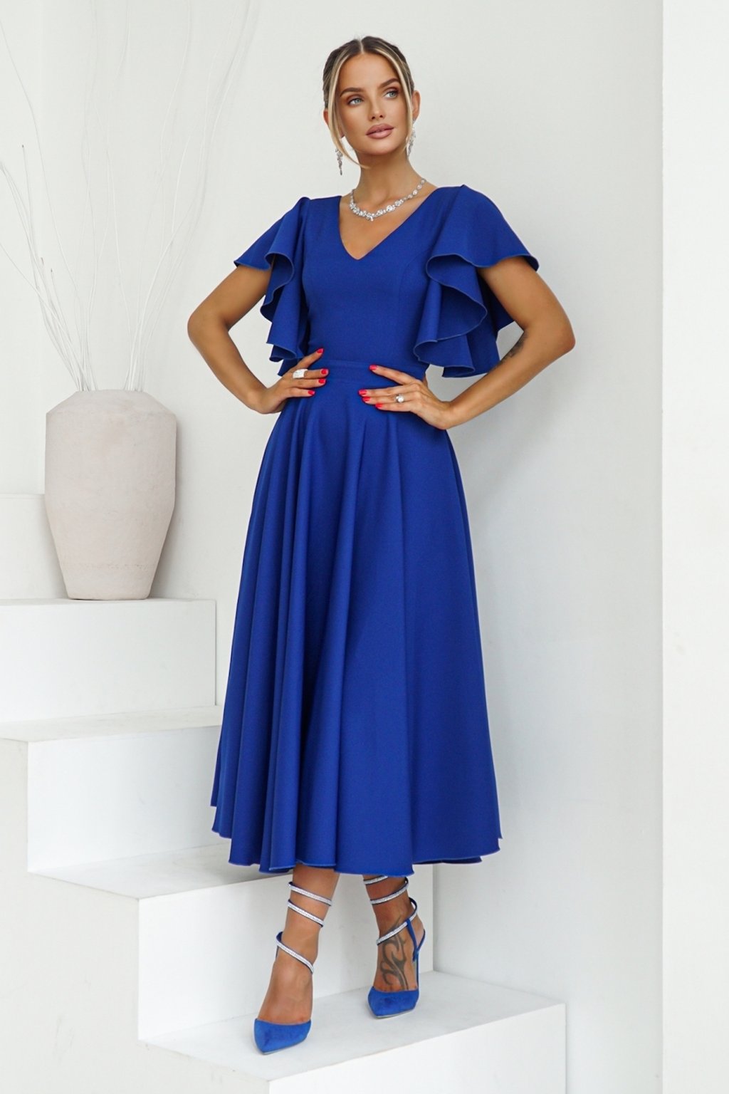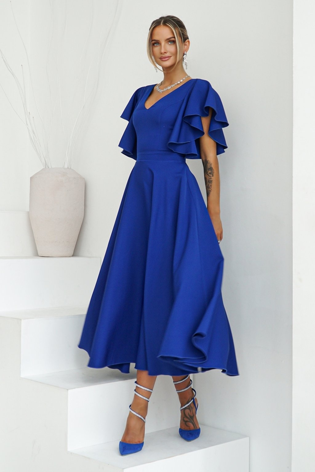 Kék midi ruha fodros ujjakkal