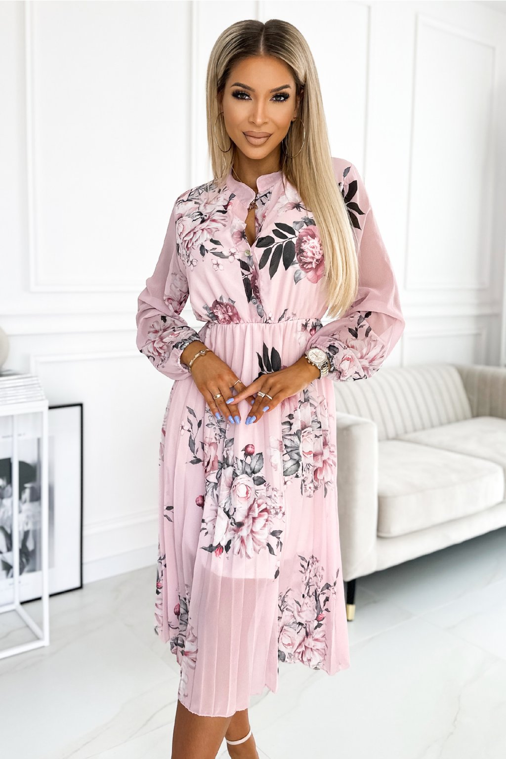 Romantikus, gyengéd, elegáns - ebben a szépséges virágokkal borított ruhában káprázatos hölgy lesz egy romantikus vacsorán. A ruha anyaga könnyű és kellemes, derékban gumis.