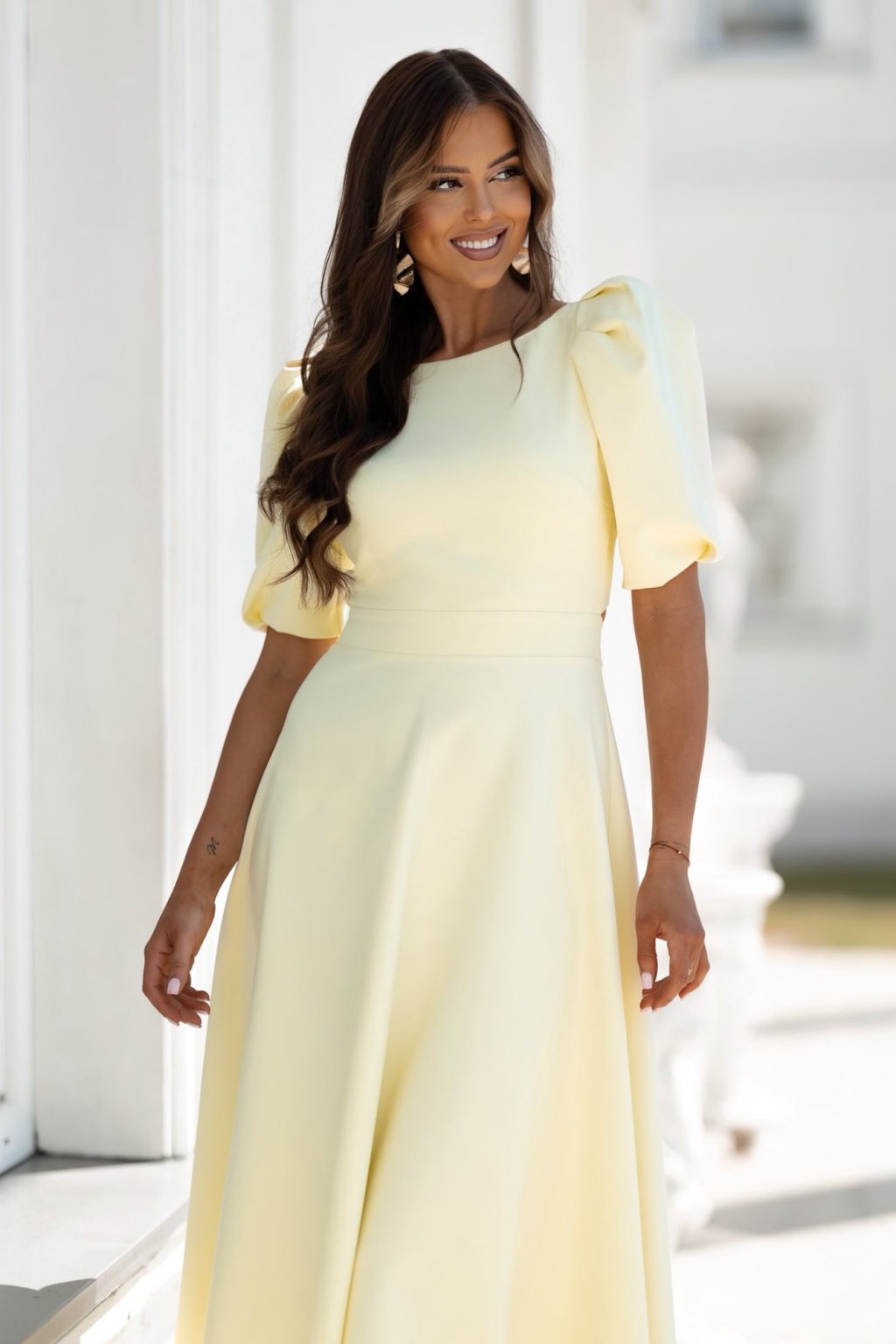 Sárga midi ruha nyitott háttal