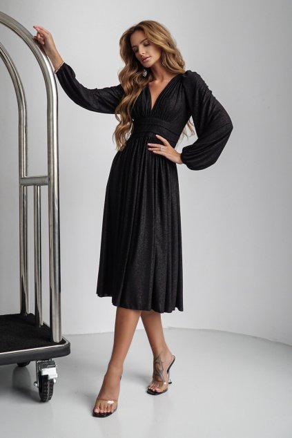 Smaragdzöld csillogó midi ruha hosszú ujjakkal