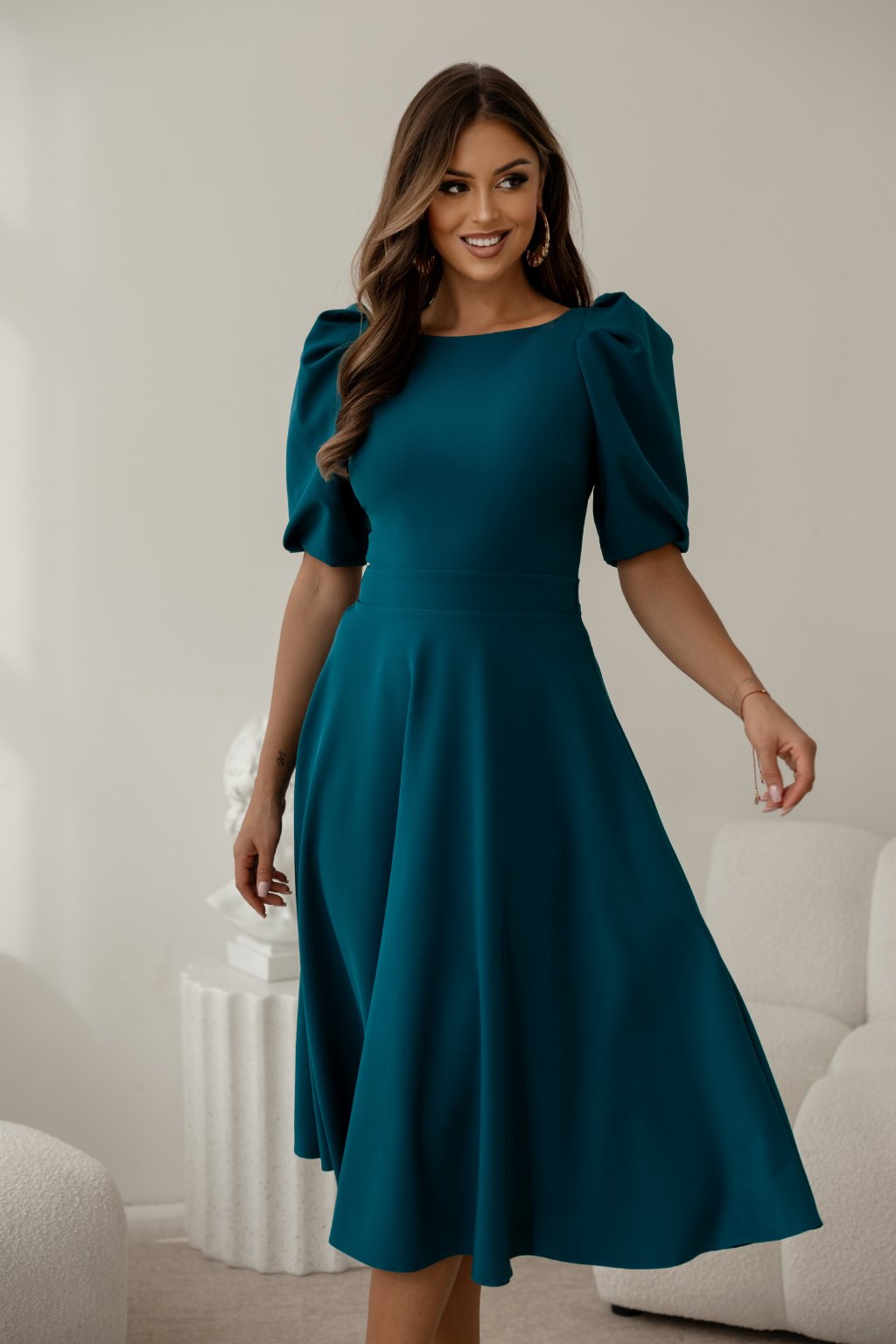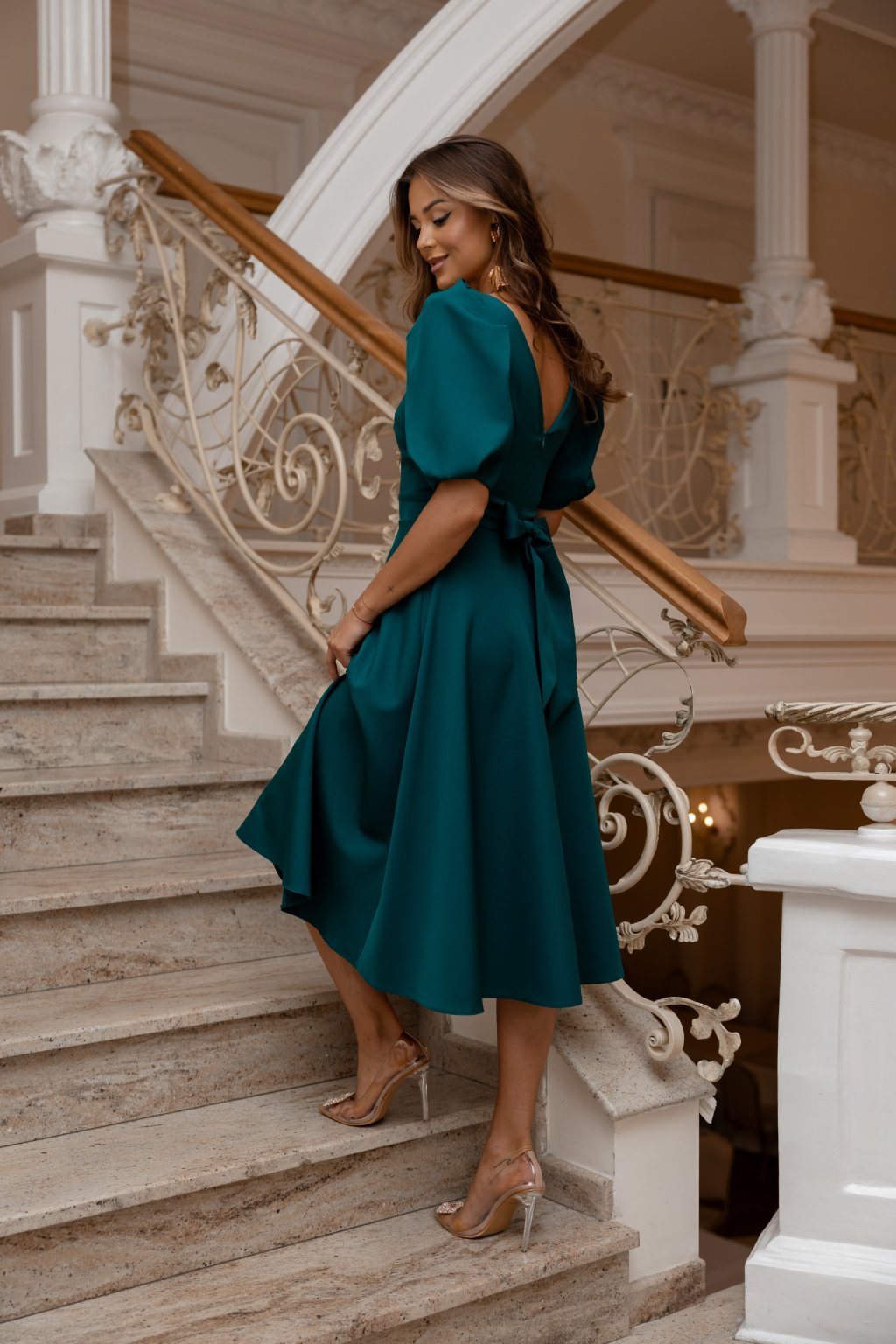 Induljon el ebben az elbűvölő ruhában bármilyen társasági eseményre, mint egy nagy adag eleganciával, bájjal és nemességgel rendelkező hölgy. A ballon ujjak és a hátkivágás romantikus hatást kölcsönöz a ruhának. Hátul cipzárral záródik.