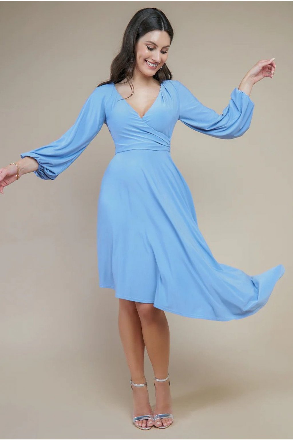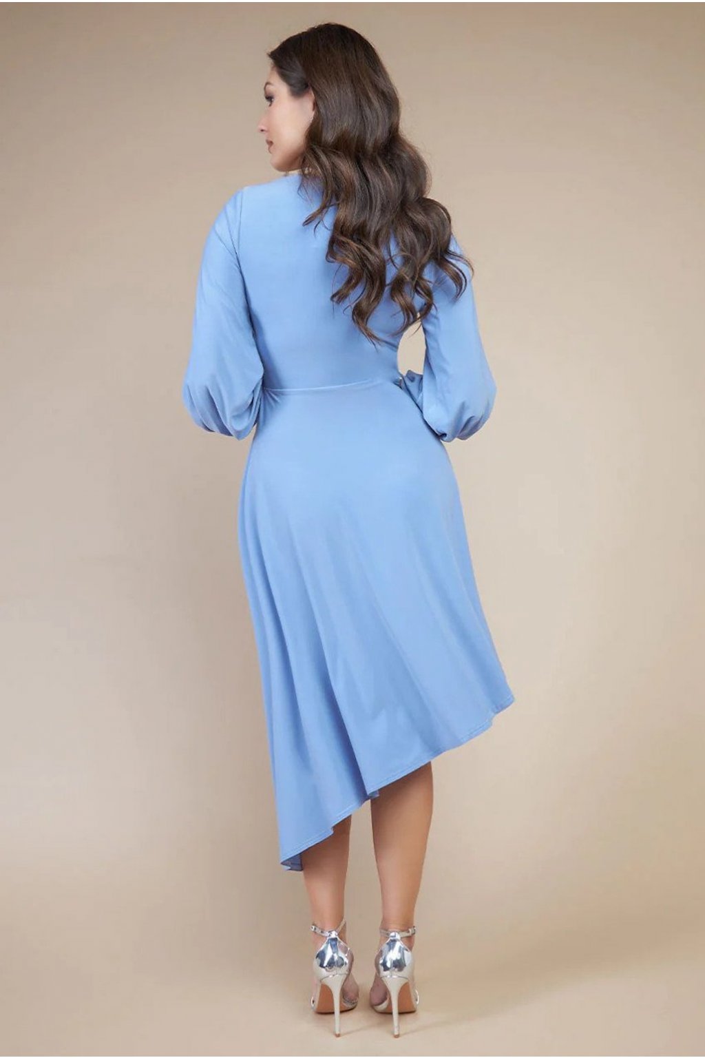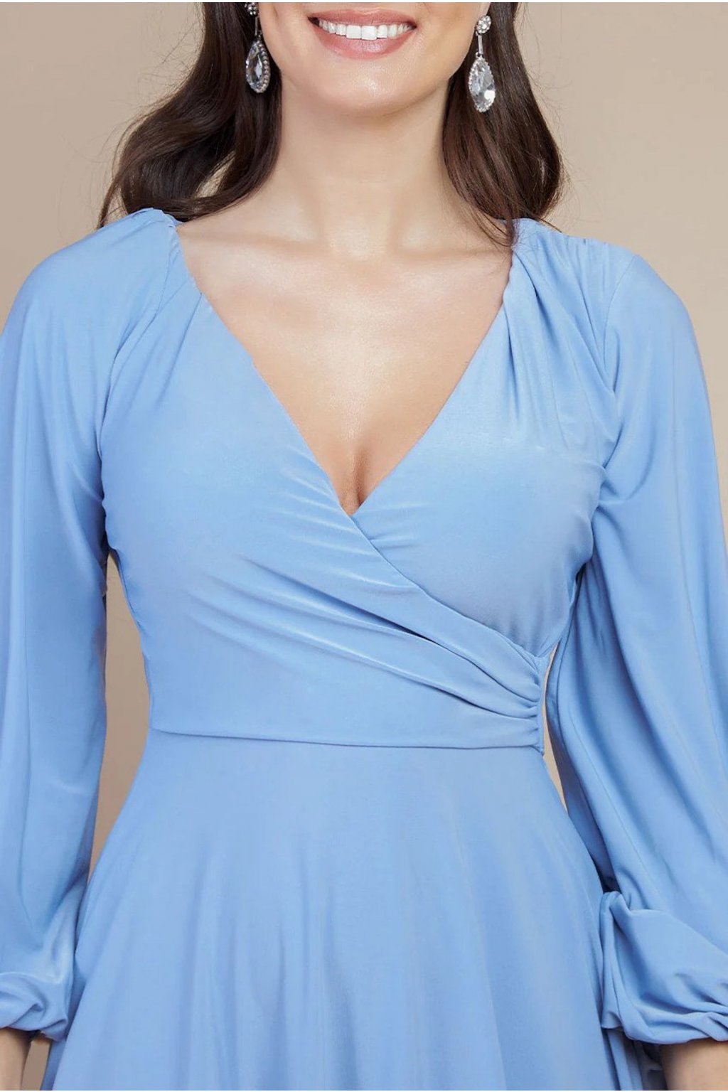 Világoskék aszimmetrikus ruha hosszú ujjakkal