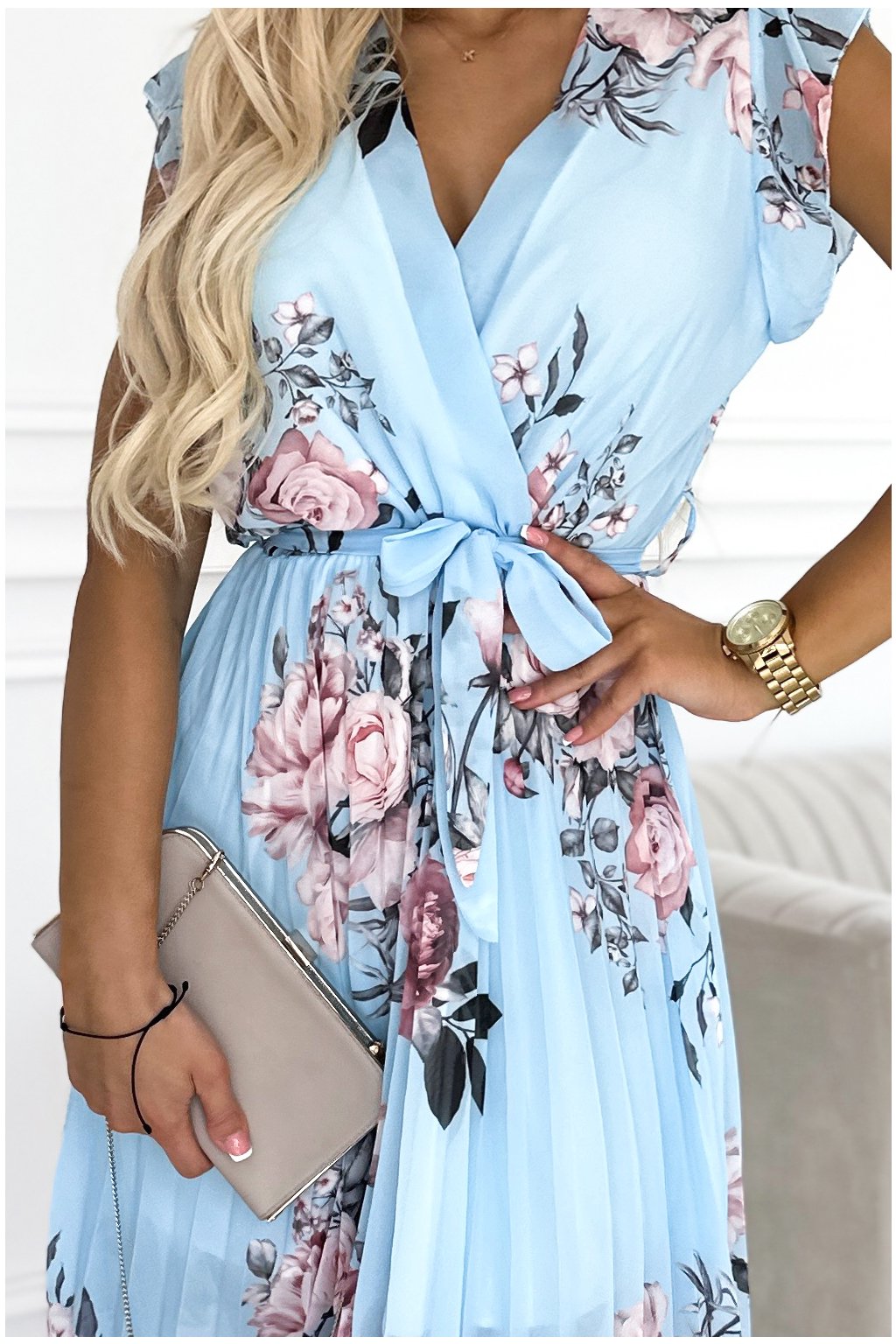Világoskék virágos rövid ruha