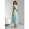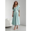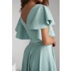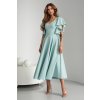 Ebben a ruhában garantáltan mindenki figyelmét felkelti. A gyönyörű A-vonalú szoknya és a romantikus fodros ujjak kombinációja bájos és elegáns megjelenést biztosít. A ruha hátul cipzárral záródik.