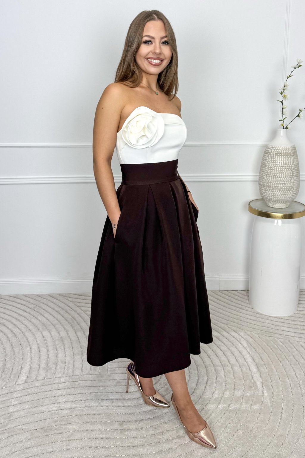 Barna A-vonalú midi szoknya
